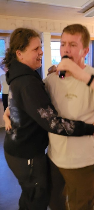 Fredag møttes vi seint i lokalet på Evjemoen pga flott vær. Gunnar spilte musikk for oss, og mange danset.